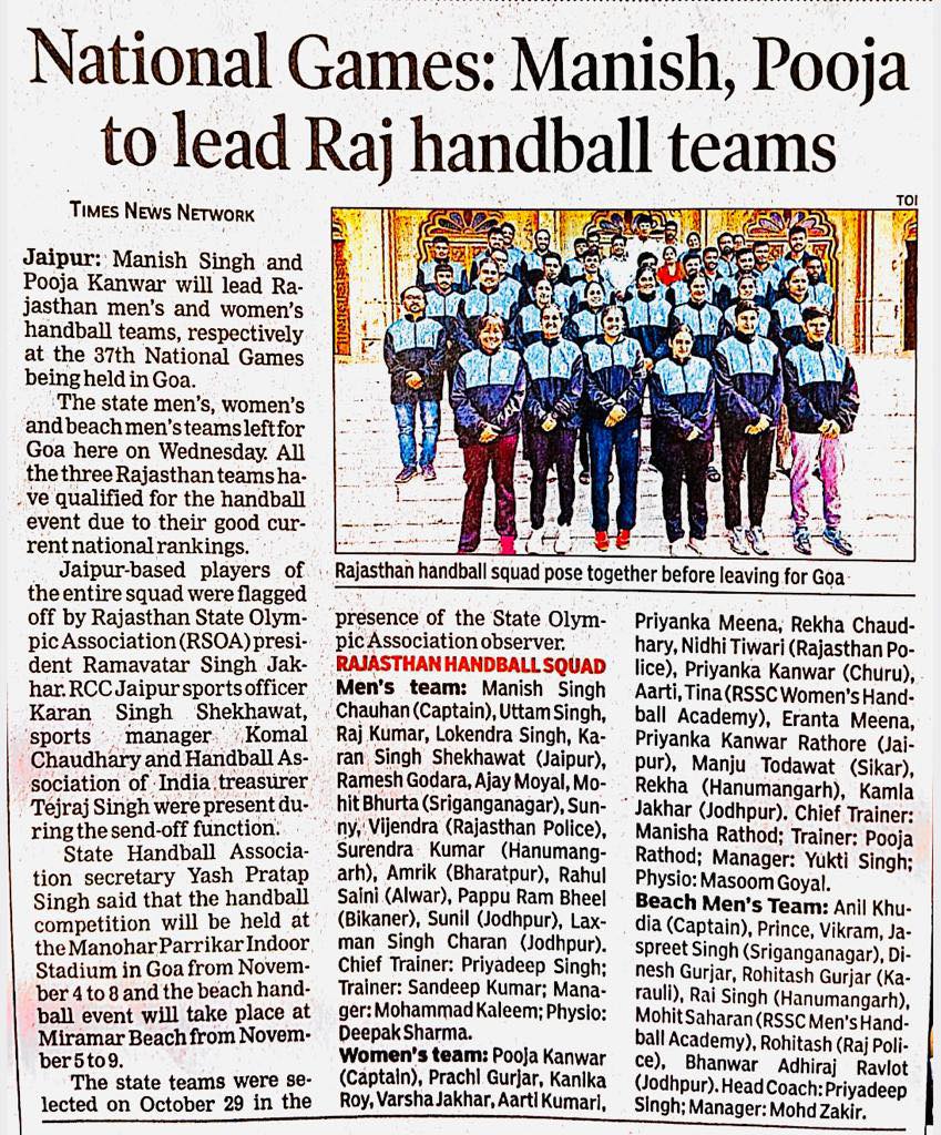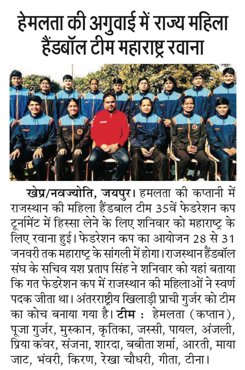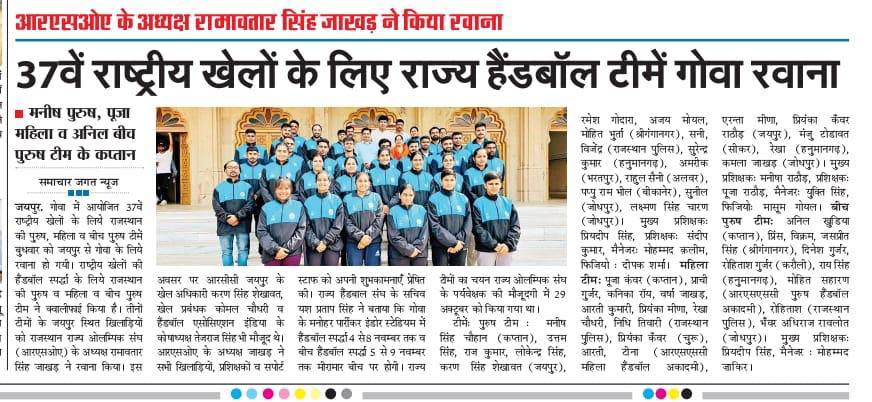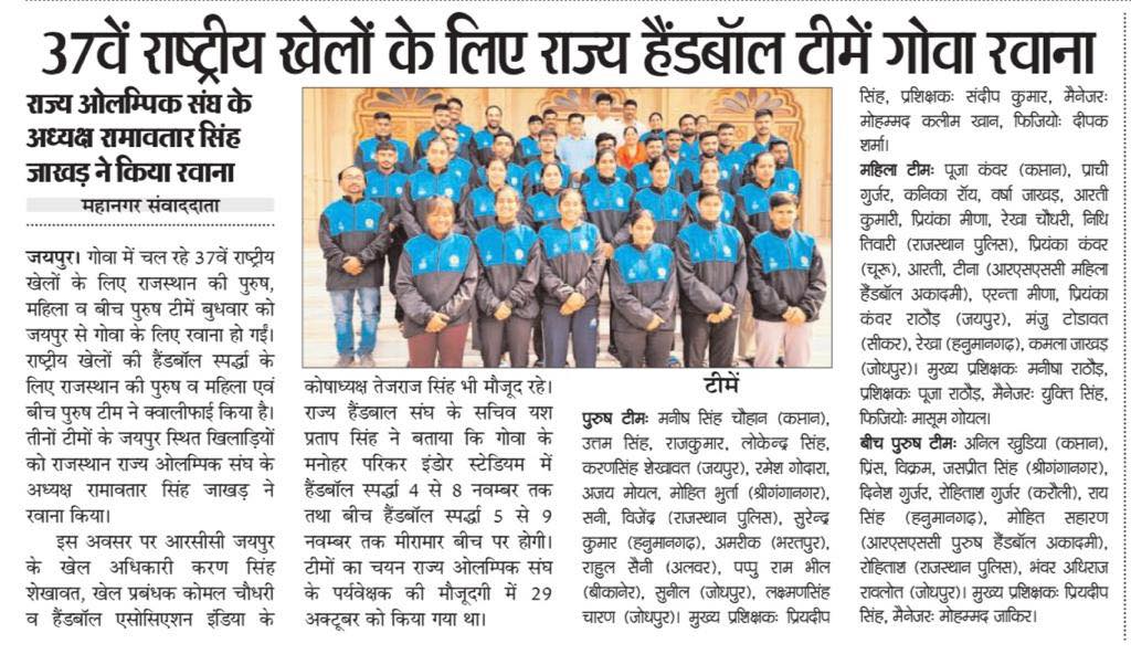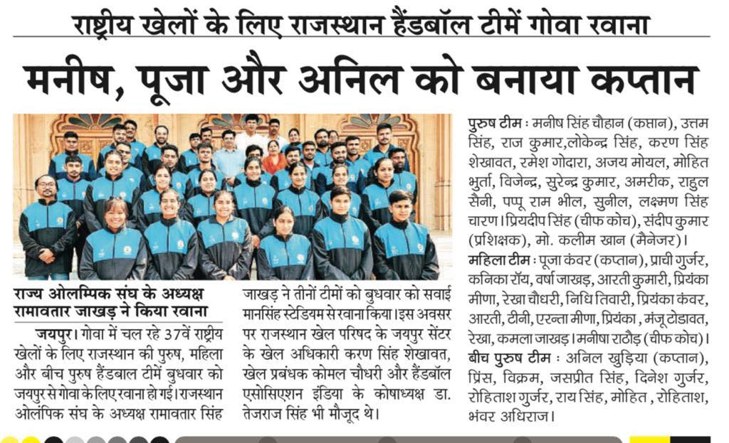 Rajasthan handball teams leave for Goa national games Manish, Pooja and Anil Made captain