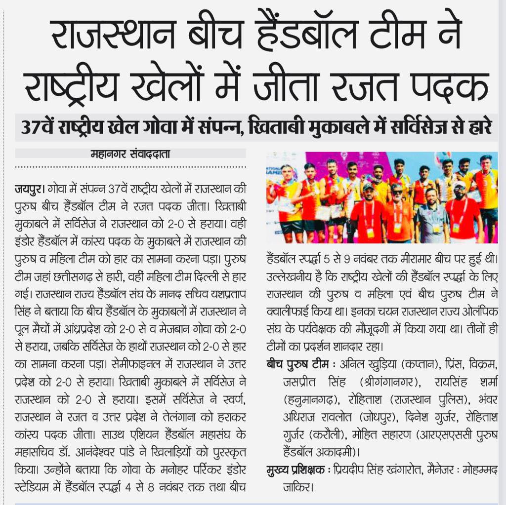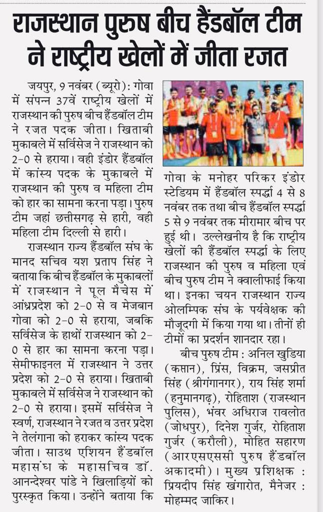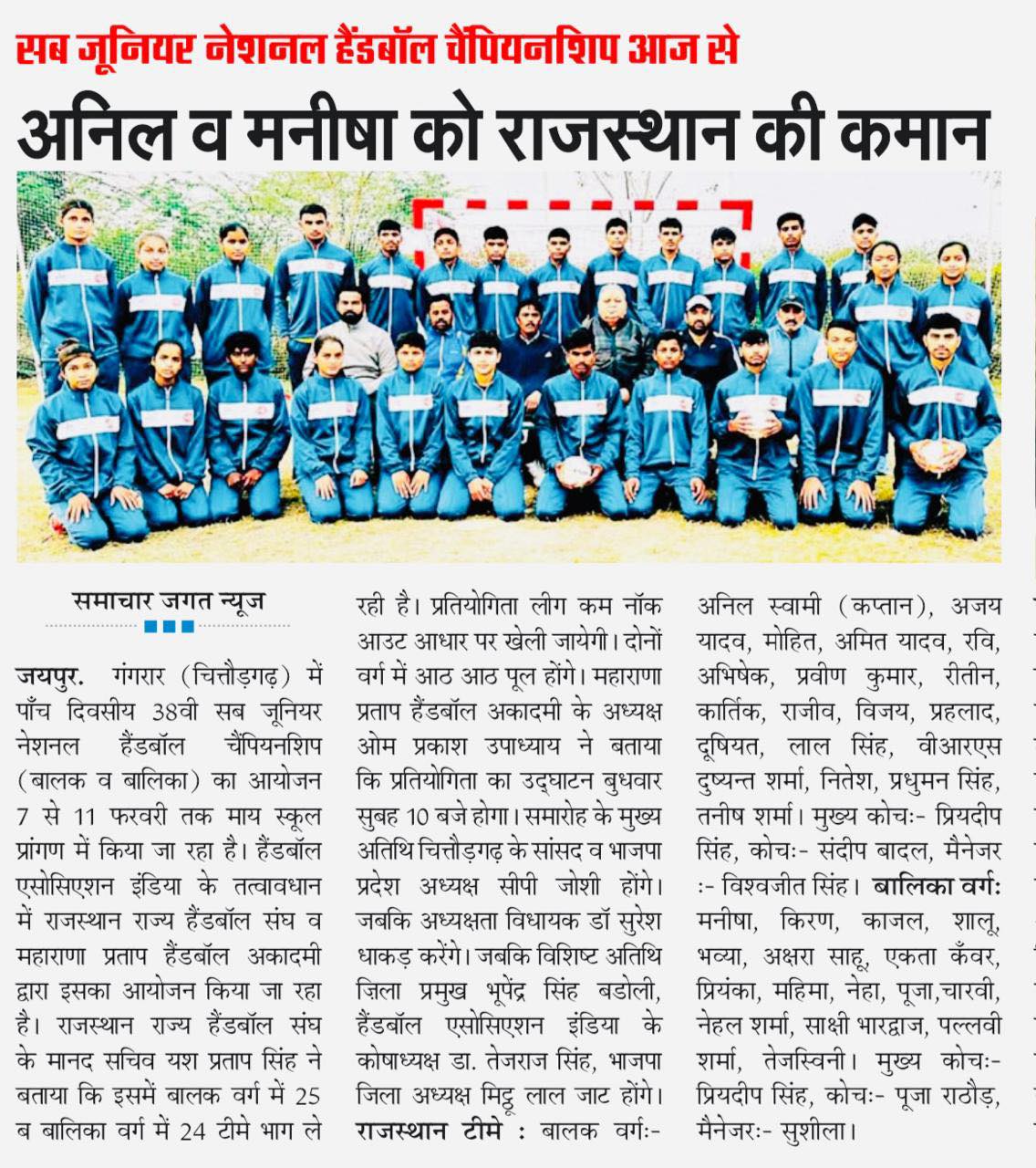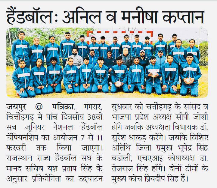 Rajasthan handball teams leave for Goa national games Manish, Pooja and Anil Made captain