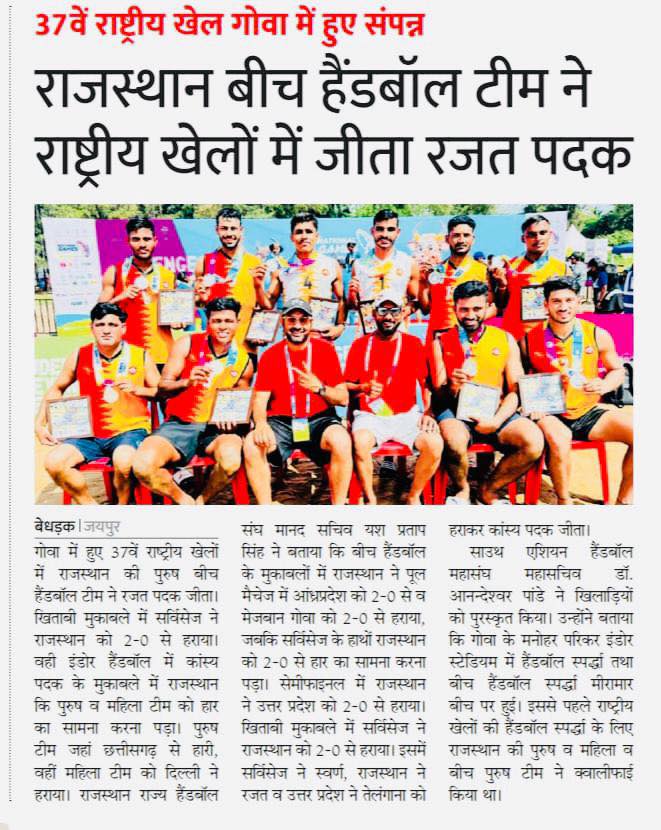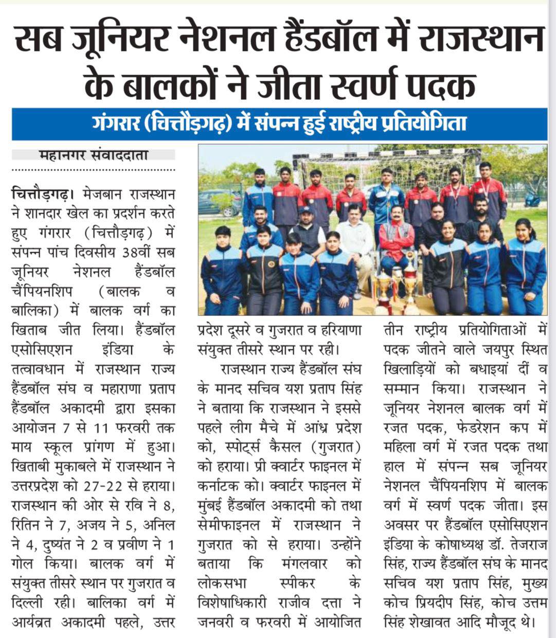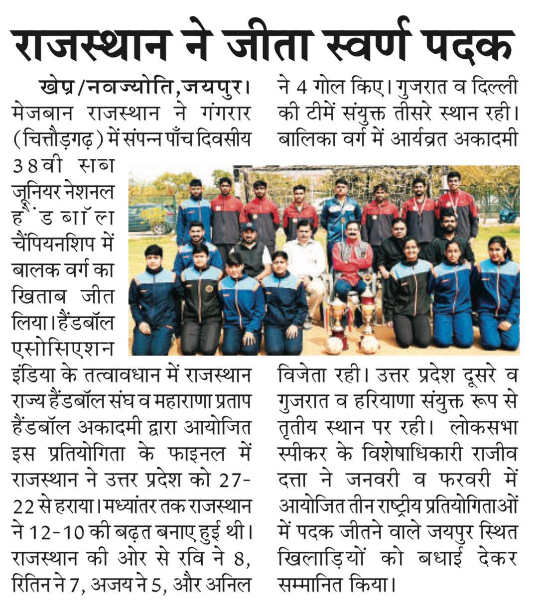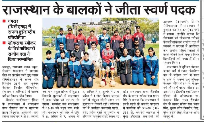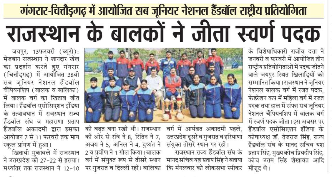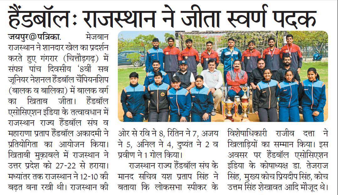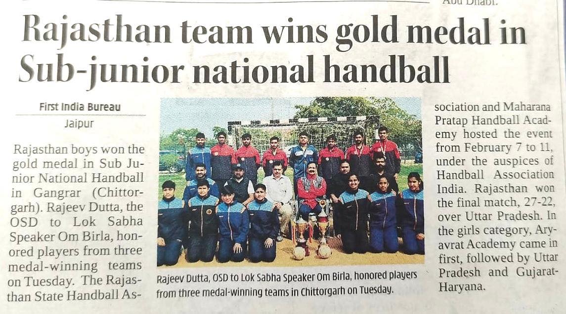 Rajasthan Team Wins Gold Medal in Sub-junior National Handball