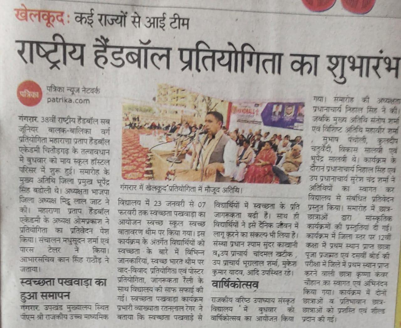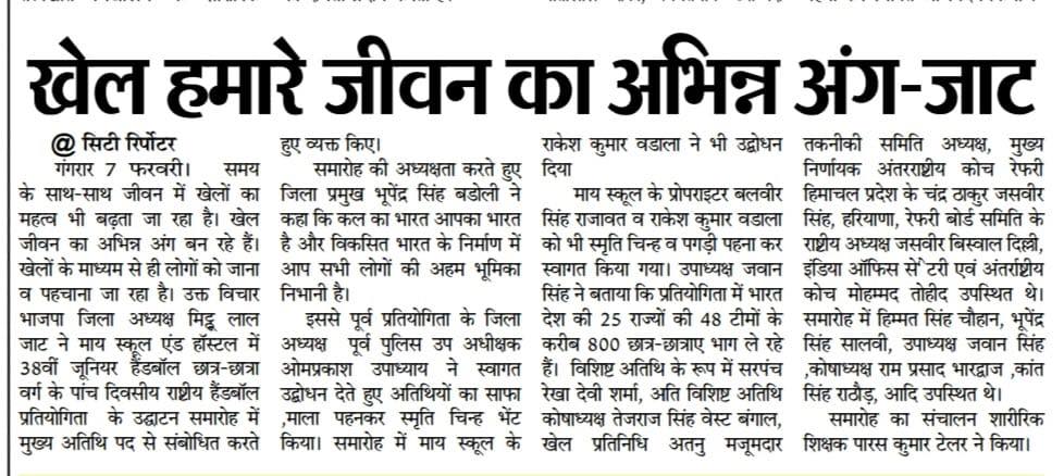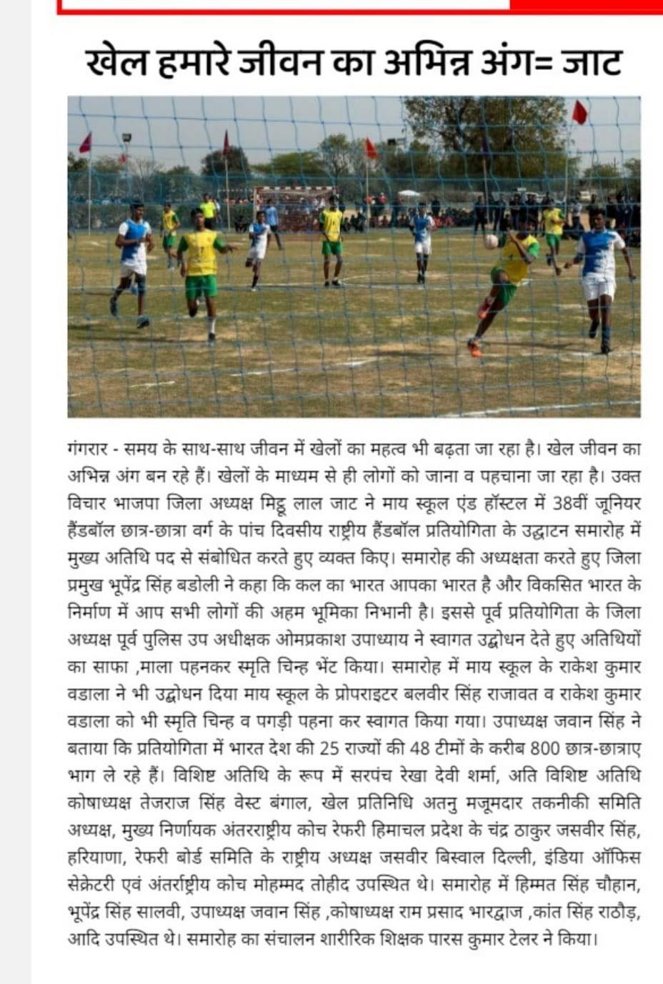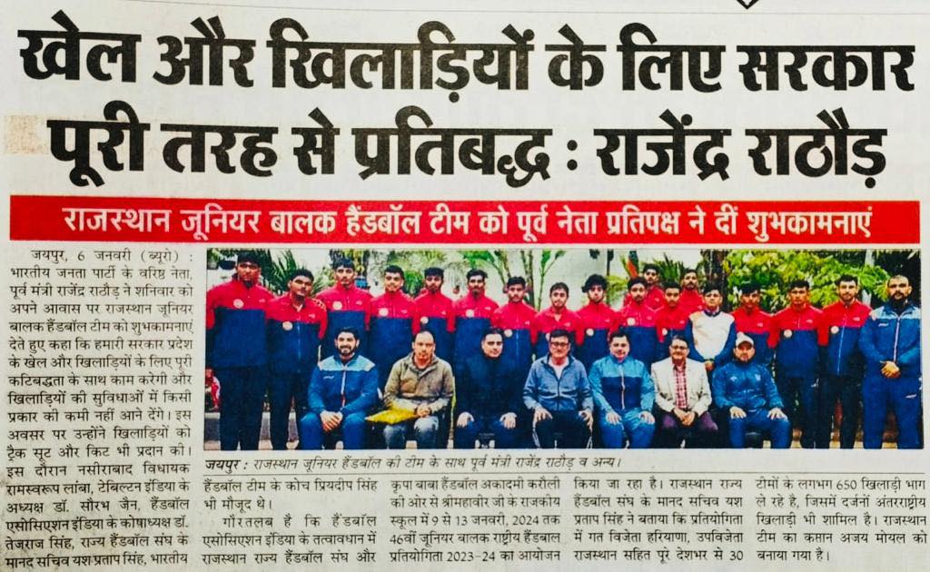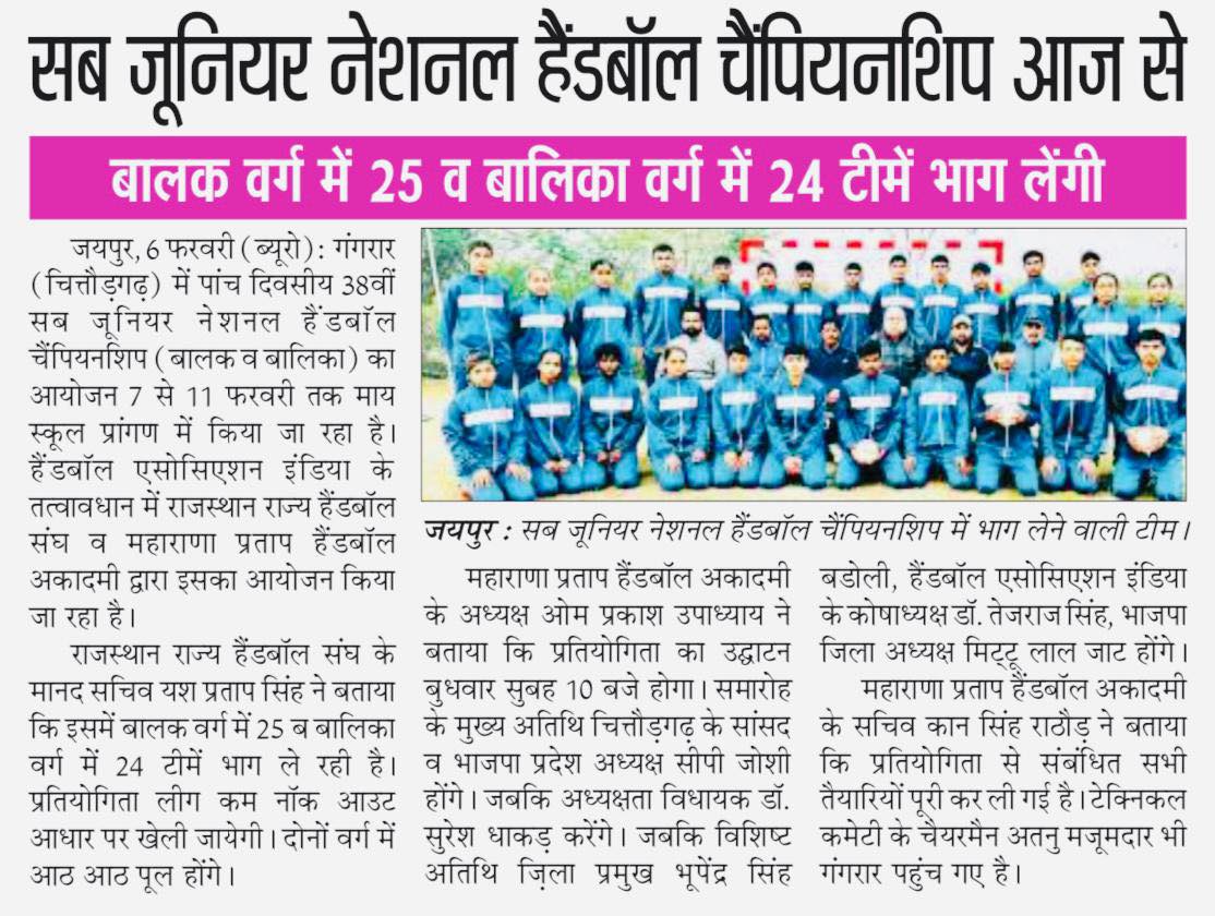 Teams will participate in the National Junior Handball Mahavirji from January 9.