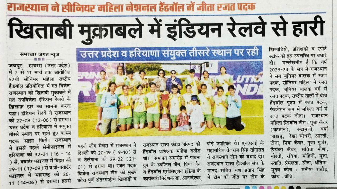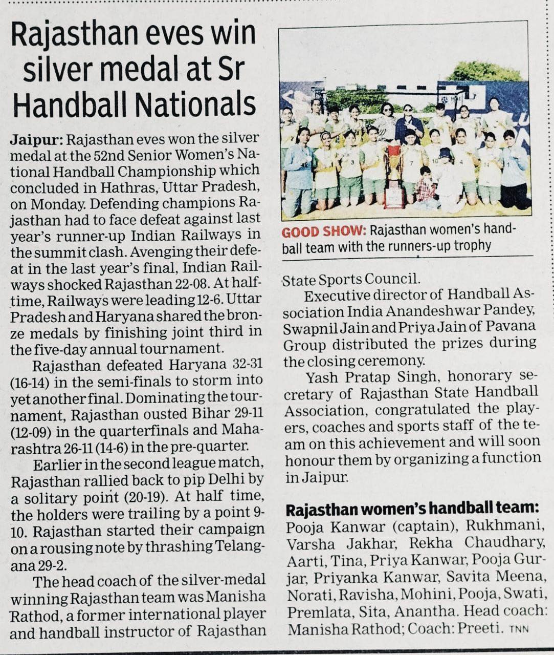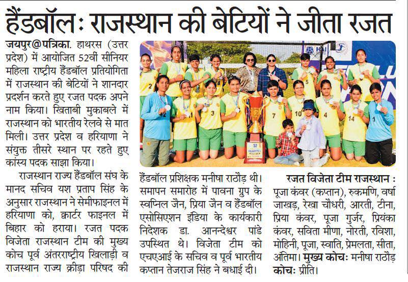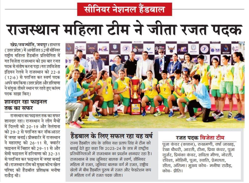 Rajasthan Eves Win Silver Medal at Sr Handball Nationals